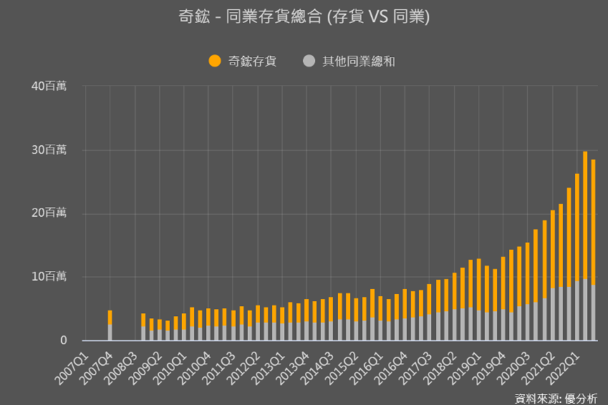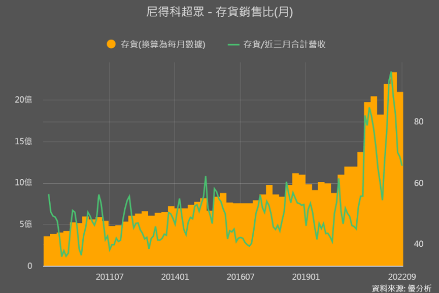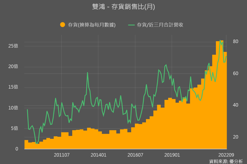 然而超眾不只評價回升空間大而已,因為超眾Q3庫存金額已從高點下降,存銷比水位也持續下降至接近正常循環區間,顯示去庫存情況不錯,整體存貨水位比雙鴻健康。