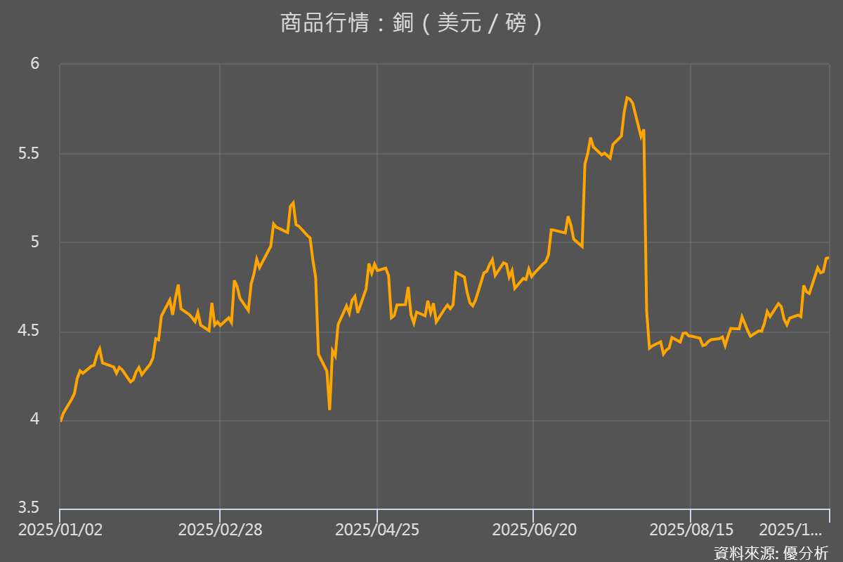 銅價連續三日上漲,主要受到供應中斷消息支撐。Freeport McMoRan (FCX-US) 在印尼經營的格拉斯伯格銅礦(Grasberg)宣布不可抗力,這座全球第二大銅礦約占全球 3% 的精礦產量,此次停產可能導致自 2025 年 9 月至 2026 年底,可能減少約 59.1 萬噸銅的供給,已促使高盛、花旗與美國銀行上調銅價預測。