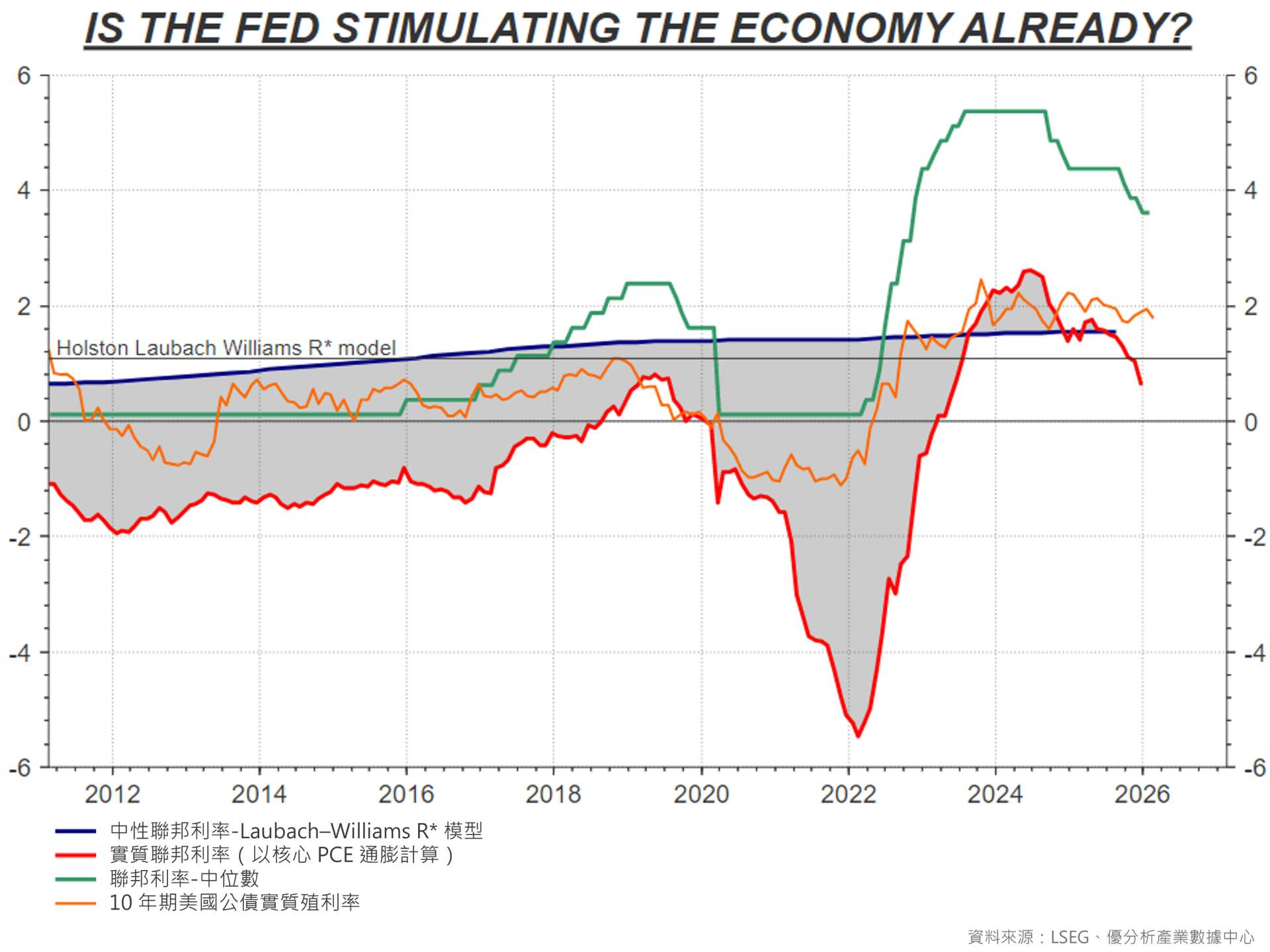 如果紅線接近或低於藍線 → 政策已接近中性,甚至開始偏刺激