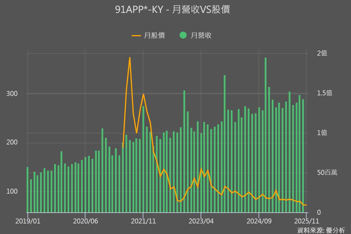 91APP月營收VS股價。(圖片來源:優分析產業資料庫)