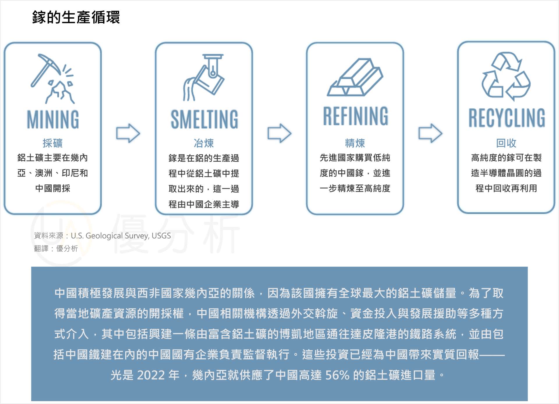 對中國而言,限制出口不僅維持原料主導權,也能將鎵的原料優勢延伸至下游,透過整合冶煉與晶片製造,推動本土氮化鎵與砷化鎵產業發展,讓鎵的戰略價值從資源層面擴大至整條產業鏈。