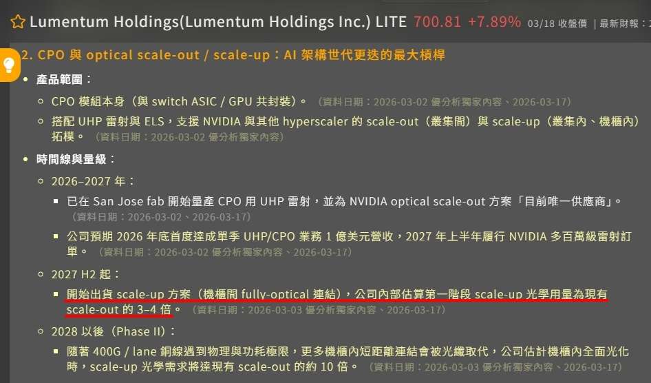 Lumentum Holdings在法說會中強調,CPO(共同封裝光學)與OCS(光交換)並非替代既有市場,而是創造新增需求。例如,光學逐步取代機櫃內的銅連接(光進銅退),意味著光通訊的應用場景從「機房之間」延伸至「晶片之間」。