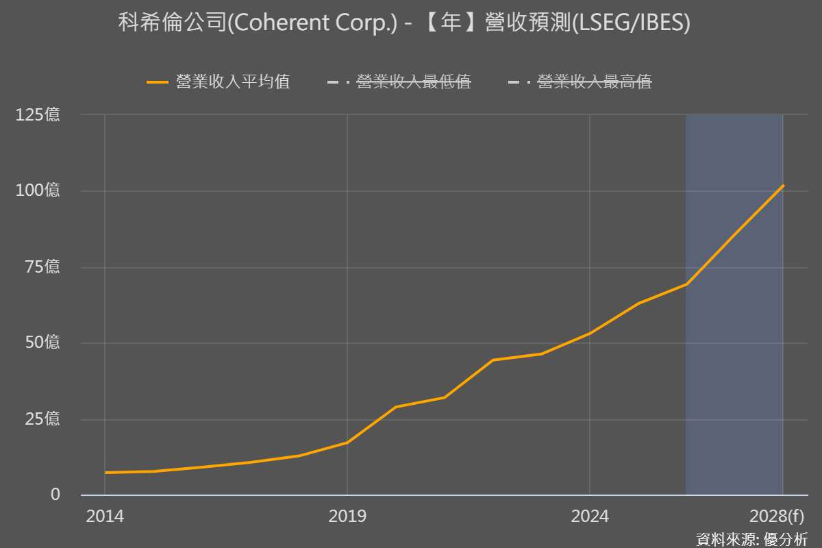 但若將兩家龍頭——Lumentum Holdings(LITE-US) 與Coherent Corp(COHR-US)的中期營收軌跡放在同一張時間軸上觀察,會發現一個不太符合傳統框架的現象:兩者的營收轉折點,幾乎同步落在2026年前後。這種「同步爆發」並非巧合,而更像是產業結構轉折的訊號。