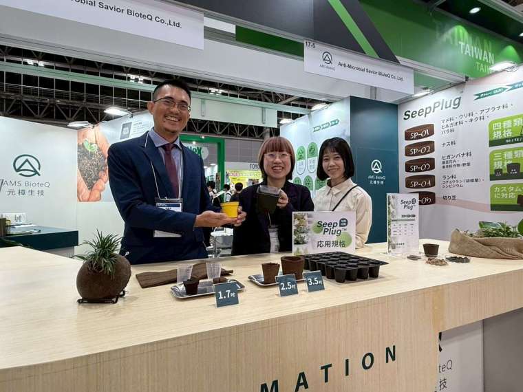 於同期舉辦的 J-AGRI 國際農業展上,元樟展示沁植 SeepPlug 智慧育苗技術,依不同植物科屬特性設計獨有基質配方,並具備六大技術優勢與多元產品規格,可靈活應用於不同作物生長階段。可降解多變形農業資材 SeepPlug,以醫材等級多孔結構製成,兼具高保水性、透氣性與完全可生物降解三大特性。此產品可精準調控水分供應,促進根系生長並減少灌溉用量與肥料浪費,適用於溫室育苗、都市園藝及沙漠綠化工程。SeepPlug 可依栽培需求製成塊狀、片狀或阡插型,兼具低成本與高效能優勢,吸引多家日本農業廠商與大學研究機構洽談合作。元樟指出,此技術體現「醫材技術 × 綠色農業」的產業融合新方向,為日本農業在氣候變遷與人力短缺挑戰下提供永續解方。