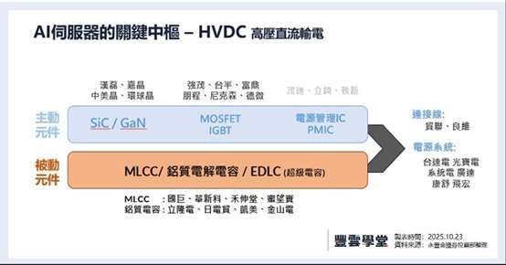 本週主軸圍繞在 HVDC 高壓直流電與 AI 伺服器電力元件需求,國際大廠 Vishay 財報顯示訂單強勁,電源與被動元件族群有望延續強勢。