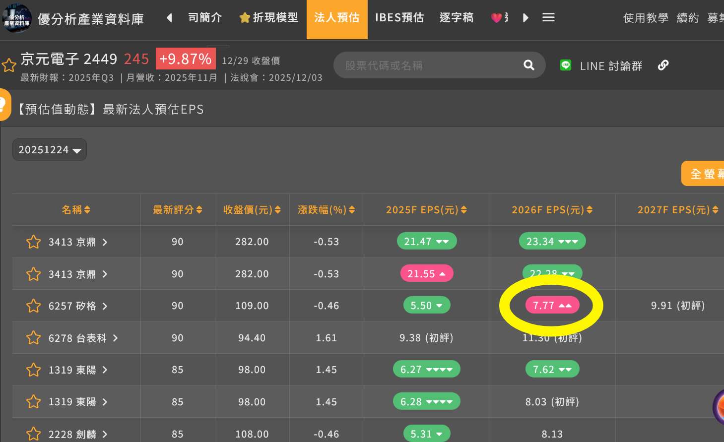 - 所以我們可以運用【優分析產業資料庫】的【法人上下修清單】來選股,第一時間發現哪間公司的『故事』可能改變了。