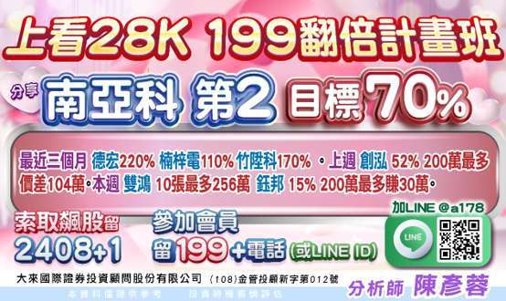 預告 南亞科 (2408-TW),三個月 100%。【南亞科 第 2】,即將發動目標翻倍,加 line 留言【777+2】索取。