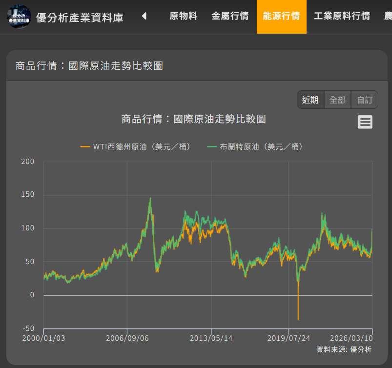 原先市場預期美伊衝突若在一週內結束,對經濟影響微乎其微。但受限於伊朗的宗教與政治因素,加上川普預測戰事恐延長至 5 到 6 週,導致市場對荷姆茲海峽封鎖的擔憂加劇。雖然目前全球原油每日呈現約 200 萬桶的供過於求(約2%),但荷姆茲海峽若遭封鎖,將影響全球高達 20% 的原油供給(每日近 2,000 萬桶)。在「大家不敢經過」的恐慌心理下,短暫的供不應求直接推升了油價。