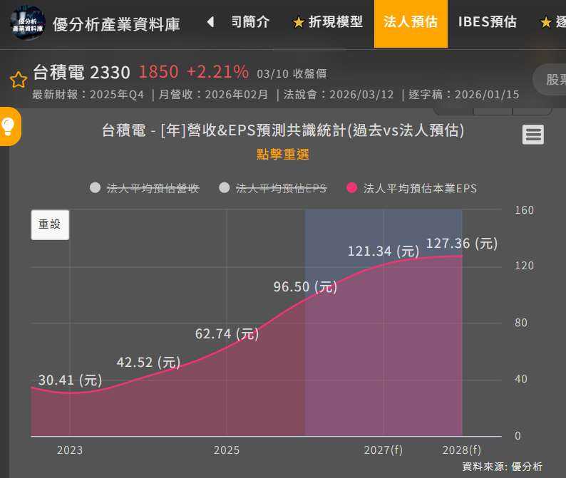 操作建議: 在油價不確定性消除前,建議採「定期定額」策略。若想尋找單筆加碼的「地板價」,可以參考 1 月 16 日法說會前後的價位,約落在 1680 元至 1700 元(靠近季線位置),這將是一個值得考慮的低接點。