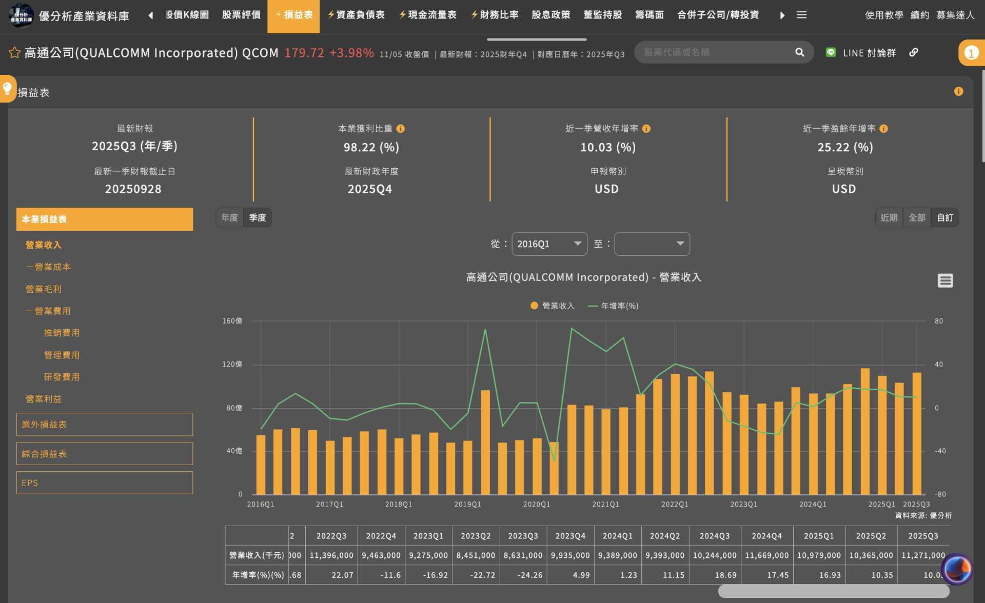 扣除一次性項目後,調整後每股盈餘為 3美元,高於分析師預估的 2.87美元;營收則年增10%至 112.7億美元,亦優於市場預期的 107.7億美元。其中,晶片事業(QCT)非蘋果客戶銷售年增18%,汽車與物聯網(IoT)全年成長27%,顯示多元應用持續推升業績。