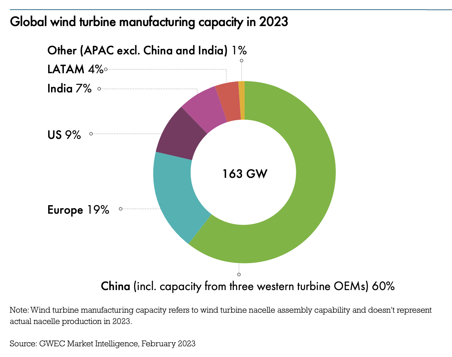 中國在鑄造、鍛造、旋轉軸承、塔和法蘭等關鍵組件的供應鏈中佔主導地位,市場份額超過70%。儘管中國預計可以滿足離岸裝置的船隻需求,但到十年末,歐洲可能會出現短缺,除非在2027年前進行投資。