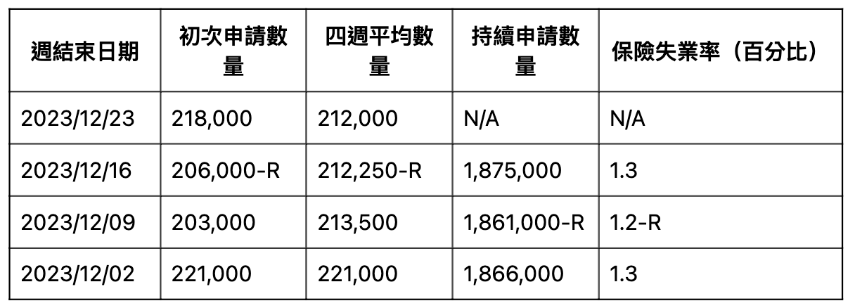 12月28日(優分析產業數據中心) - 根據最近的美國勞工部報告,2023年12月23日當週的初次失業救濟申請數量增加到218,000人,較上一週的206,000人有所上升。這一轉變可能反映了勞動市場的微妙波動,也可能是假日季節性因素的影響。