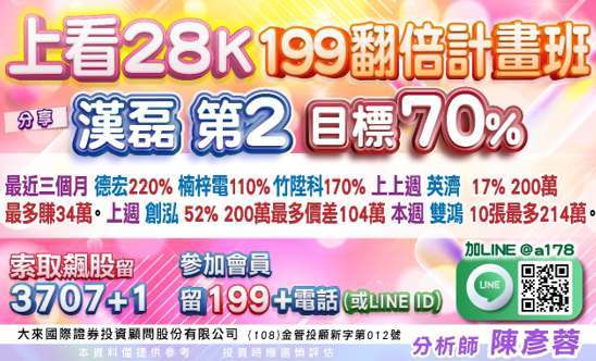 預告 漢磊 (3707-TW),1.5 個月 100%。【漢磊 第 2】,即將發動目標翻倍,加 line 留言【777+2】索取。