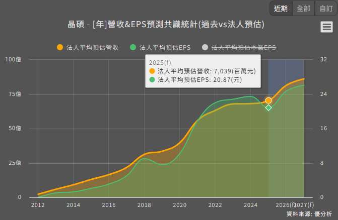 市場預期 2026 年營收有望來到約 81.39 億元,年增約 15.6%,EPS 上看 25 元,毛利率回升至約 52.7%,並呈現逐季成長軌跡,核心驅動力來自日本與歐洲矽水膠產品放量,以及產品組合改善。