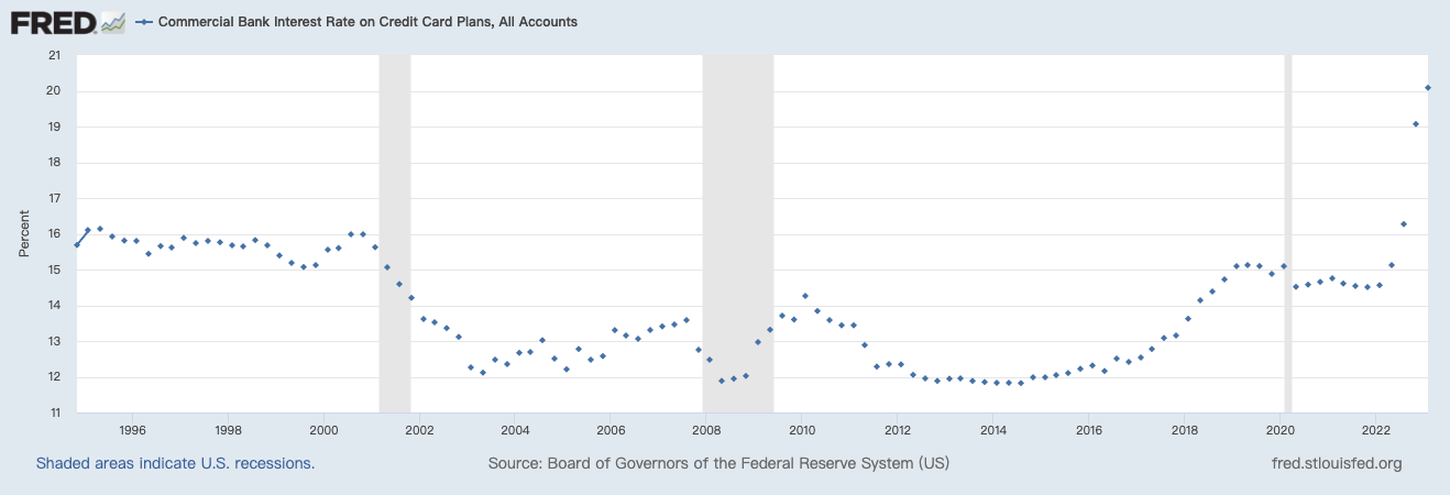 更雪上加霜的是,現在的信用卡利率為至少1994年以來的最高點。