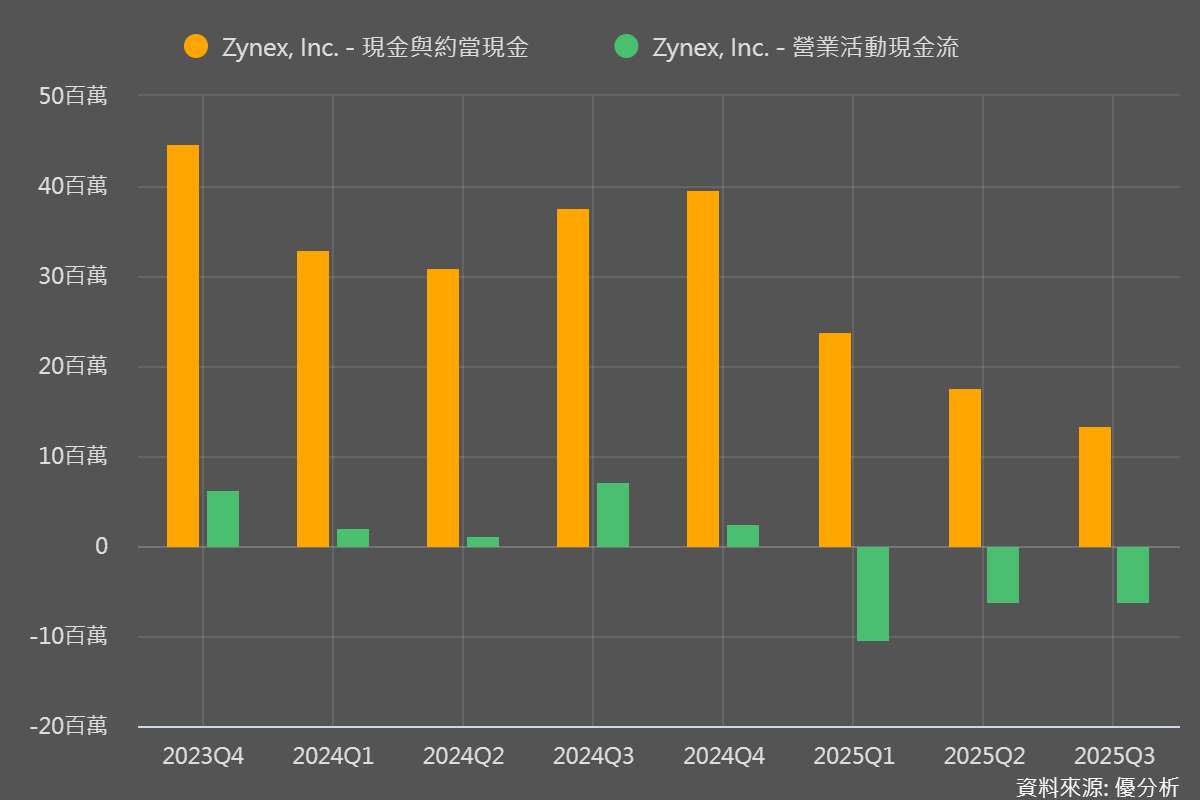截至2025年9月30日,Zynex帳上現金僅剩1326萬美元,季度現金流為負值630萬。