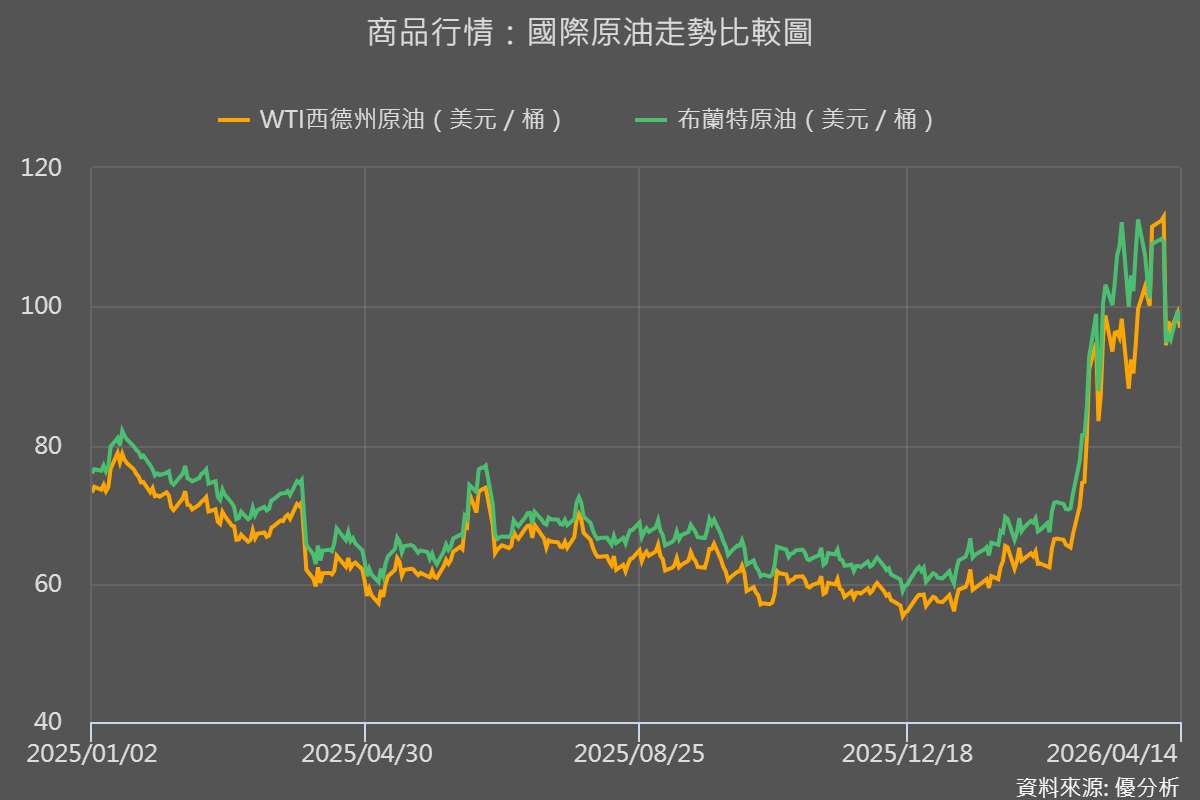 2026年04月15日(優分析/產業數據中心報導)⸺ 中東局勢持續緊張,國際油價走勢愈來愈受外交訊號牽動,市場也從先前擔憂供應中斷的恐慌情緒,逐步轉向審慎觀望。