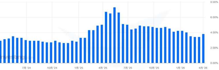 比起 CPI 數據,通膨與預期形成自證預言,民眾擔心通膨,商家擔心原物料上漲,導致實際上的調價行為加速落實發生,去年鮑爾也表示通膨預期對 FED 是有參考意義的。而上圖為每月最後一個星期五公布的密西根大學民眾通膨預期,3/27 最新數據從 3.4% 上升至 3.8%。