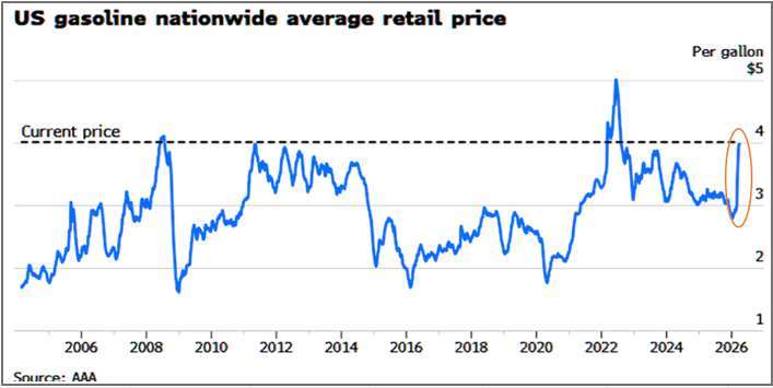 美國零售加油價格上升,基本上是直接反映在 CPI 數據上,因為這完全符合終端消費的性質,且蒐集的是全美數據,不過實際上 CPI 的權重佔比估算,能源類 6~6.5%,一半來自油,另一半來自電與天然氣,因此實際上直接月增貢獻僅約 0.015%,並不會因為單一能源項目的暴漲,對數據直接造成衝擊,法人的重點是通膨預期,與擴散至其他終端產品的後續漲價效應