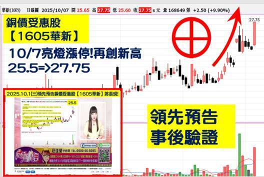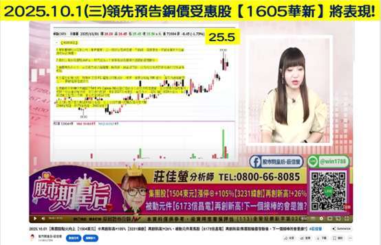 2025.10.1 股市期皇后節目領先預告 (1605-TW) 華新,25.5=>27.75