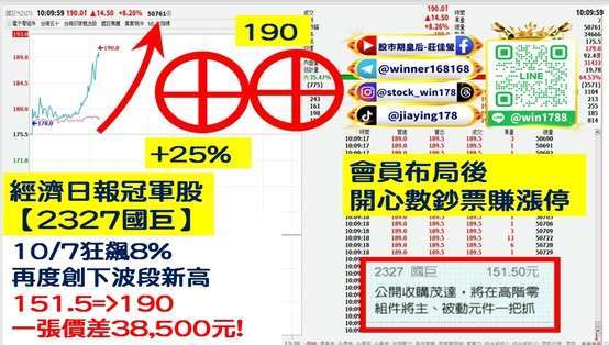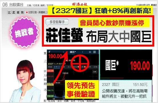225.9.14 經濟日報領先預告 (2327-TW) 國巨,151=>190