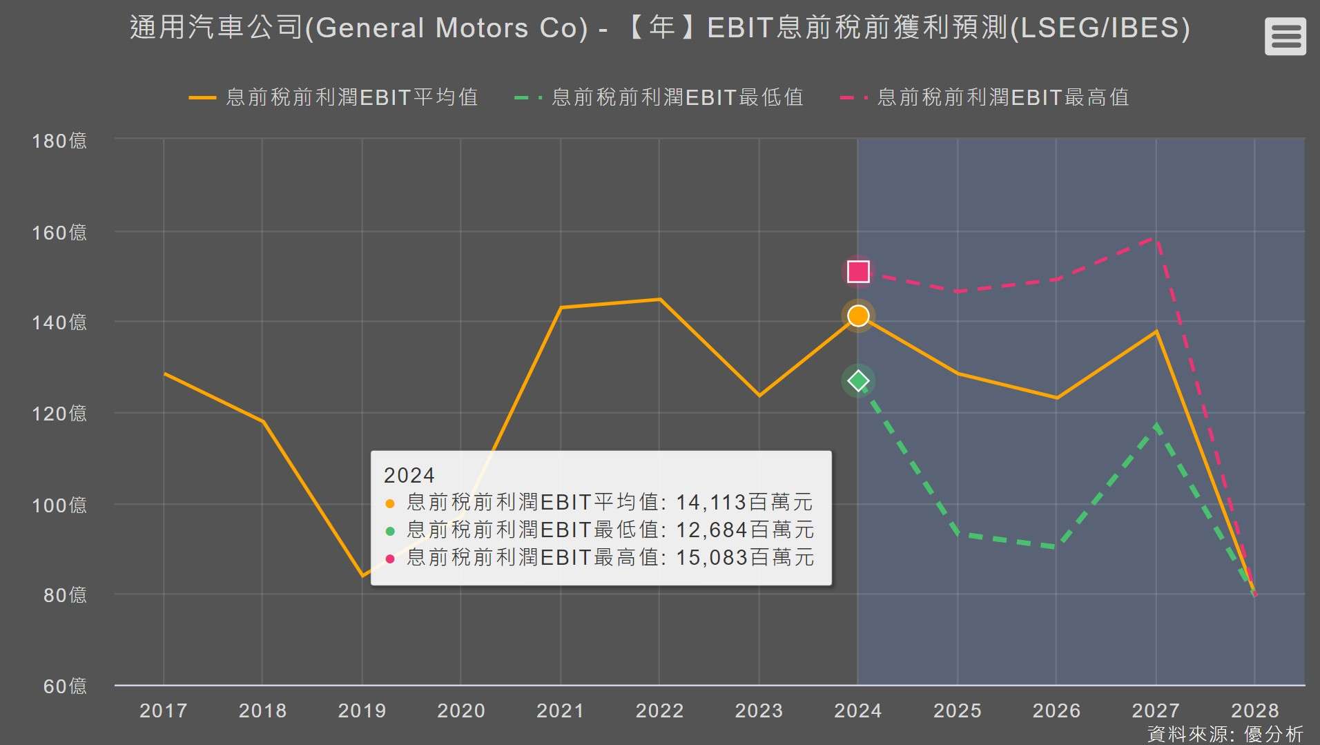 • GM年初預測稅前利潤在120億至140億美元之間,並於年中上調至130億至150億美元,正朝著140億至150億美元的稅前利潤目標邁進。