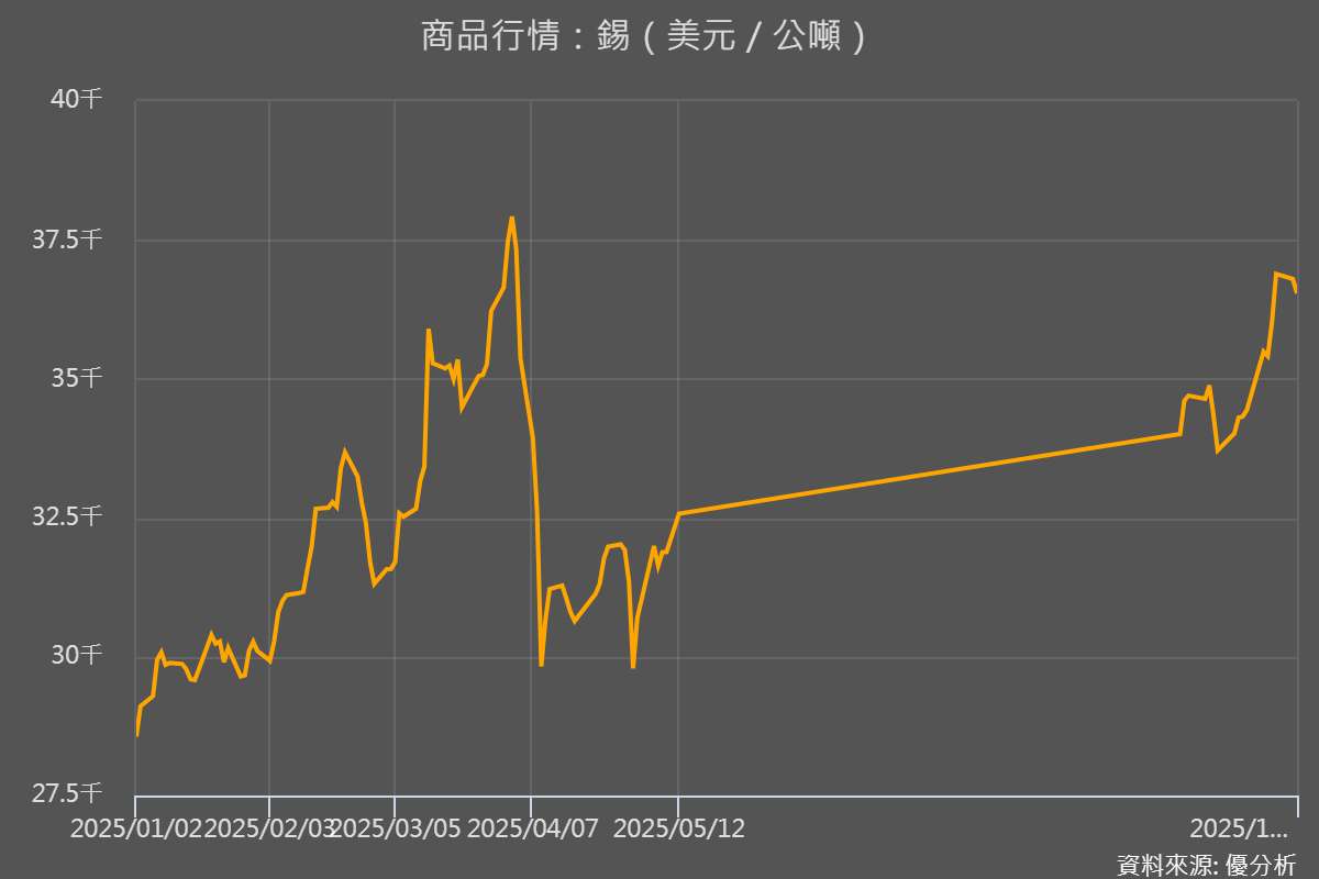 錫價的走勢受到印尼政策行動影響——印尼總統普拉伯沃(Prabowo Subianto)於10月6日在邦加島主要城市邦加檳港(Pangkalpinang, Bangka Island)出席印尼總檢察署資產移交儀式,將查扣的6座冶煉廠、約 680 公噸精煉錫及108台重型設備移交印尼國營錫礦商 PT Timah,並要求持續打擊走私與非法開採。該行動同時引發印尼當地中小型礦工抗議,警方出動水砲與催淚瓦斯驅散人群。