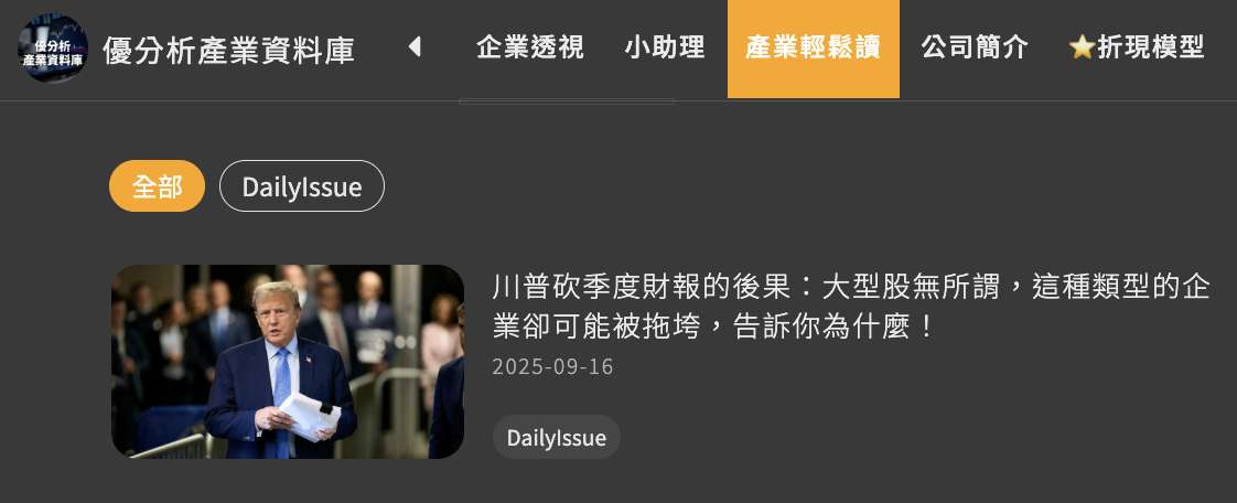 優分析專屬報告已上架:川普砍季度財報的後果:大型股無所謂,這種類型的企業卻可能被拖垮,告訴你為什麼!