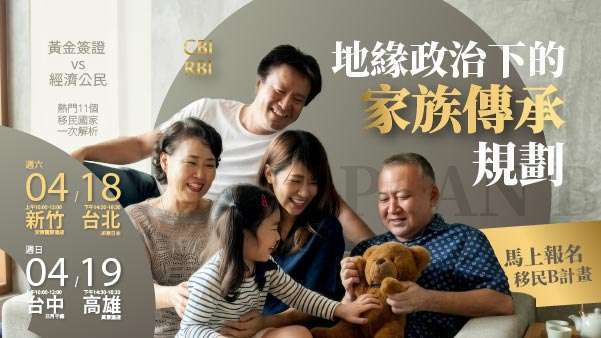 立即報名「移民 B 計畫:地緣政治下的家族傳承規劃」實體講座