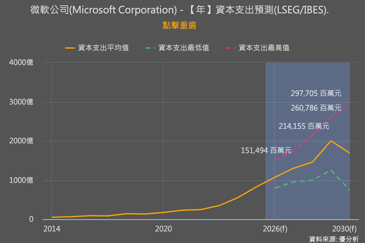 2026年04月30日(優分析/產業數據中心報導)⸺ Microsoft(MSFT-US)公布最新展望,預期Azure雲端業務本年度成長將優於市場預期,同時規劃2026會計年度資本支出達1,900億美元。