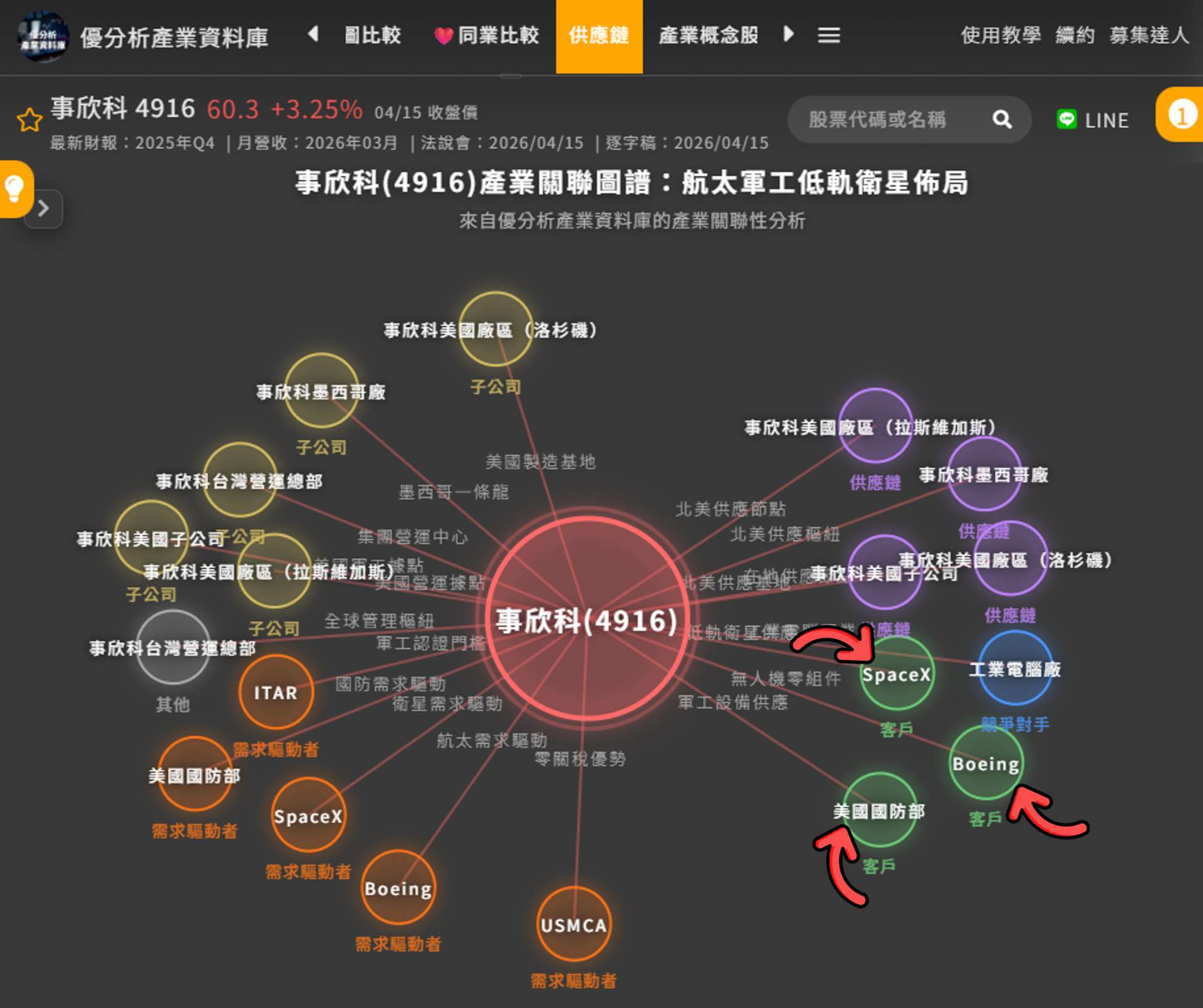 進一步從客戶結構可以發現,事欣科目前的需求來源,主要來自美國國防體系、SpaceX低軌衛星,以及波音無人機三大方向。
