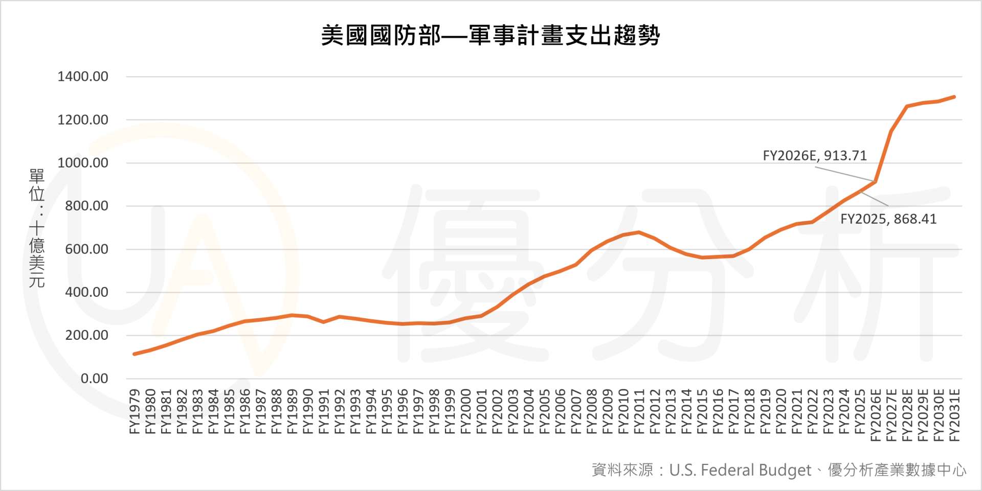 首先,是美國國防支出的長期上升。