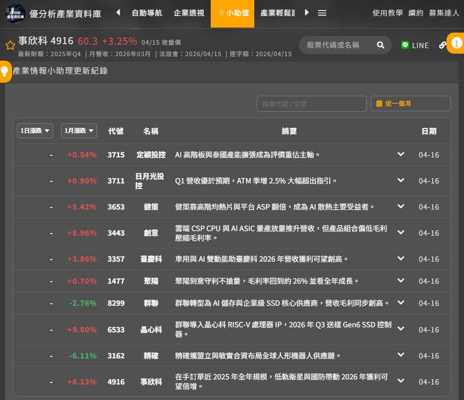 新功能上線!個股動態更新一目了然,趕快訂閱👉優分析產業數據中心