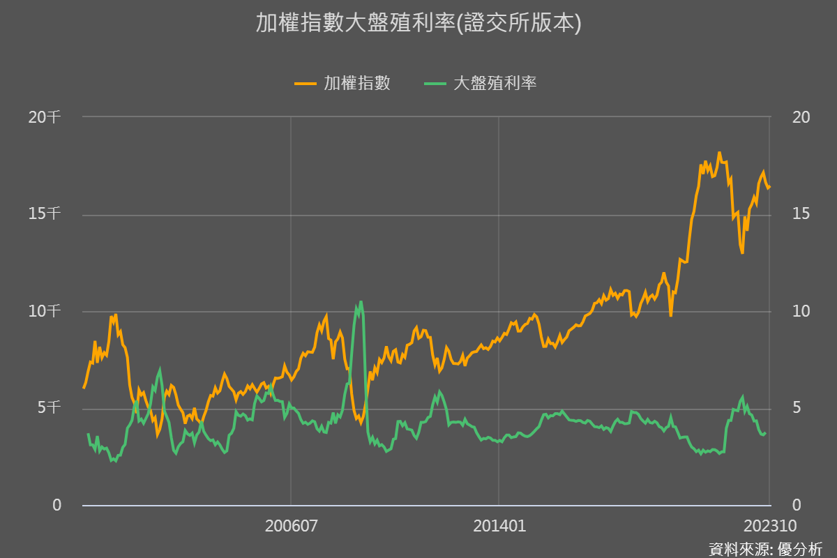 根據證交所統計,上市公司整體殖利率約在3.7%,對於追求股息收入的投資人來說,如果美國公債都能給你4.8%,3.7%的股息殖利率就顯得微不足道了。