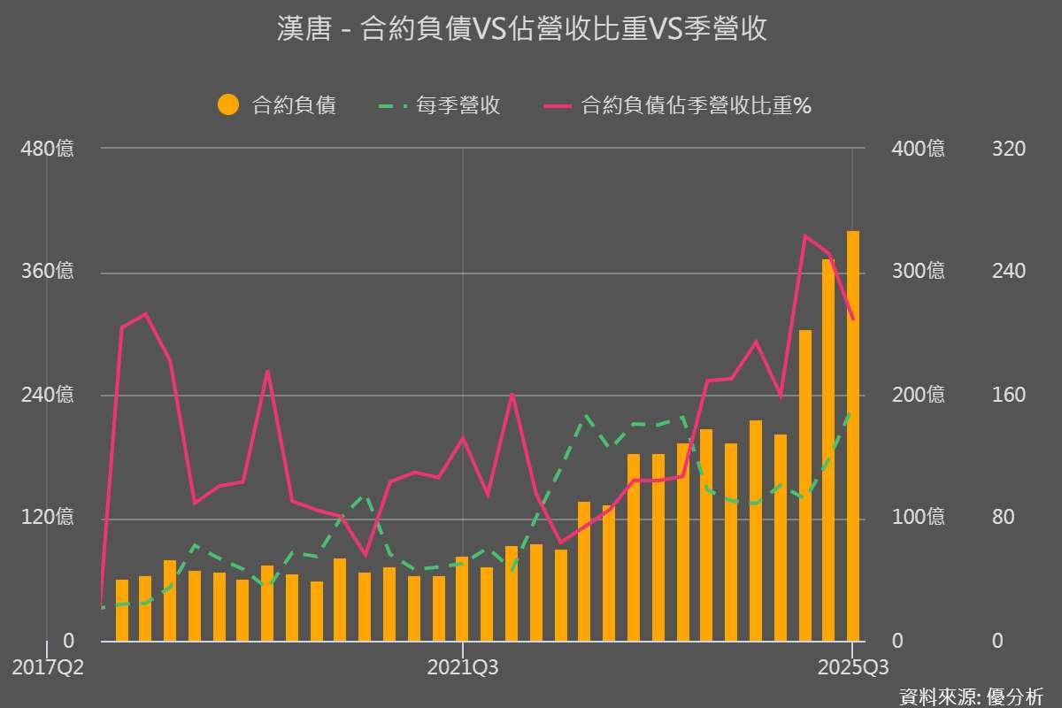 再進一步觀察下圖的合約負債,金額長期一路往上墊高。