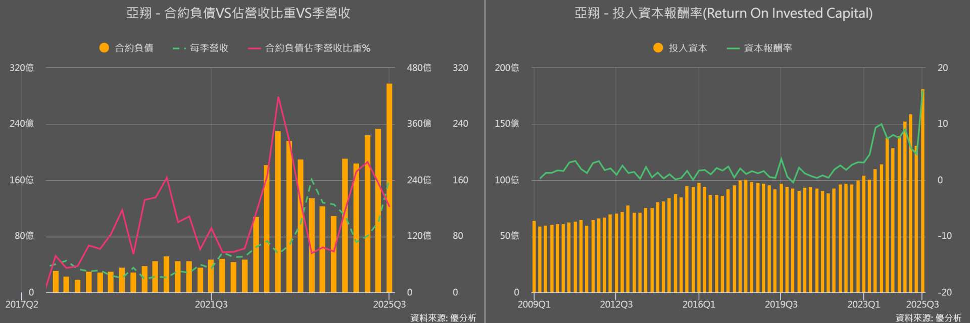 合約負債代表公司先收到了客戶的預收款,但工程尚未完成交付,因此未來仍有履約與認列的空間。當這個數字持續墊高,通常意味著訂單正在累積、而且後面有一段營收會跟著認列出來,讓未來的營收能見度更清楚。