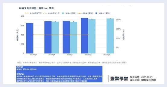 上季微軟營收為 764 億美元,本季預期會略為下降至 747 到 758 億美元之間,投資人也需關注 Microsoft 雲端及 AI 業務是否持續推動營收雙位數成長,惟 AI 基礎設施擴張將使 Cloud 毛利率略降至約 67%。營運利潤率預計持平,顯示公司在高成長與成本控管間取得平衡。重點在於雲端與 AI 需求能否延續強勁動能,及毛利率壓力是否受新技術效率提升抵消。