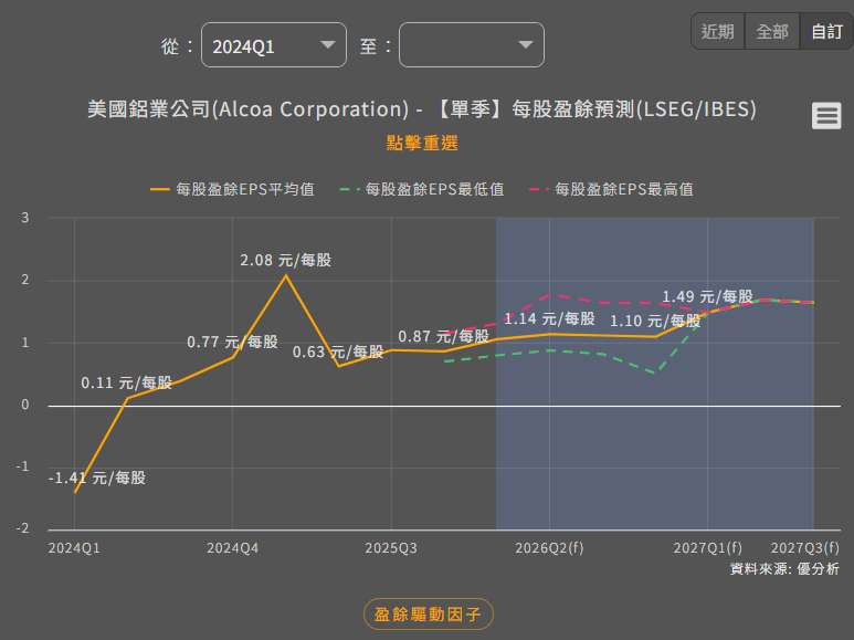市場分析人士認為,若鋁價持續上行,加上公司提升產能效率,Alcoa在2026年將有望維持穩健表現,但貿易政策與能源成本仍是主要變數。