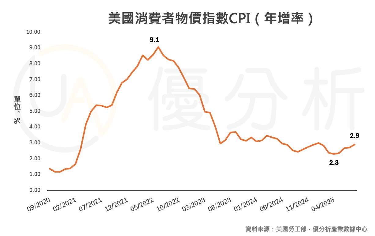 美國勞工部9月11日公布的數據顯示,2025年8月消費者物價指數(CPI)月增率為0.4%,高於市場預期的0.3%,並創下自1月以來最大漲幅,年增率達2.9%,同樣為今年以來新高。漲幅主要受到住房成本上升0.4%與食品價格上升0.5%的推動,其中旅館房價上漲2.3%、航空票價飆升5.9%,二手車與卡車價格增加1.0%。核心CPI(排除食品與能源)月增率維持0.3%,年增率為3.1%,與7月持平。分析指出,川普政府加徵的關稅持續傳導,加上農業勞動力短缺,進一步推升食品與日常消費品價格。