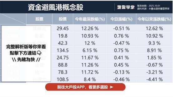 資金避風港概念股 – 大戶投 APP 看更多選股