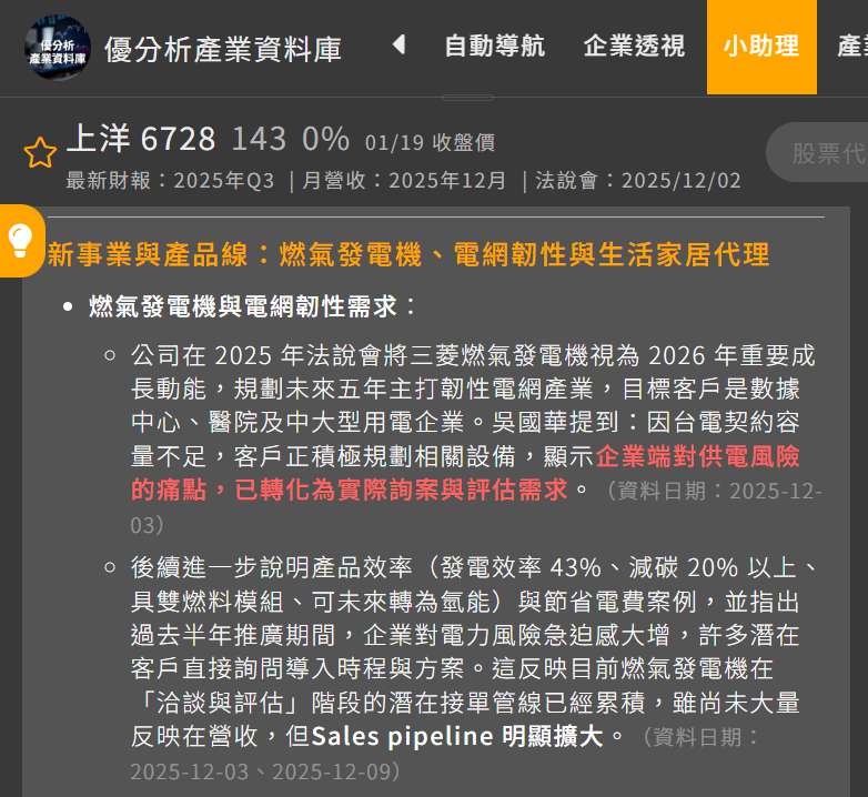 能源事業: 燃氣發電與微電網搭上 AI 與電力韌性話題,成為新一波爆發點。