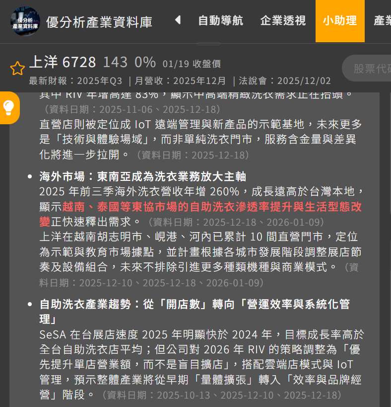 洗衣事業: 台灣市場持續優化,海外(泰國、越南)複製成功模式,持續貢獻穩定現金流。