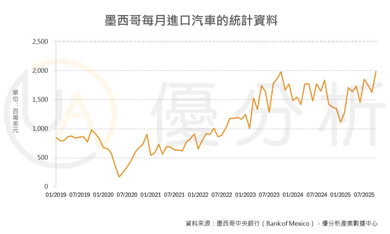 2025年12月11日(優分析/產業數據中心報導)⸺ 墨西哥政府宣布自2026年起,針對無自由貿易協定國家的進口商品大幅調升關稅,其中汽車關稅自20%暴漲至50%,市場認為此將重創印度出口至墨西哥市值近10億美元的汽車產業鏈。受影響車廠包括Volkswagen、Hyundai、Nissan與Maruti Suzuki,其中Volkswagen的出口曝險最高。