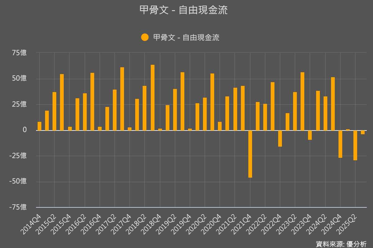 根據最新財報,公司帳上現金僅 113億美元,總債務則已達 995億美元。若再新增180億美元,公司總債務將突破 1,175億美元,進一步提高財務風險。雖然甲骨文每年經營活動帶來逾200億美元現金流入,但由於資本支出持續增加,近幾季自由現金流明顯收縮。換言之,公司「賺得不少,但花得更多」,因此需要透過舉債補足資金缺口。