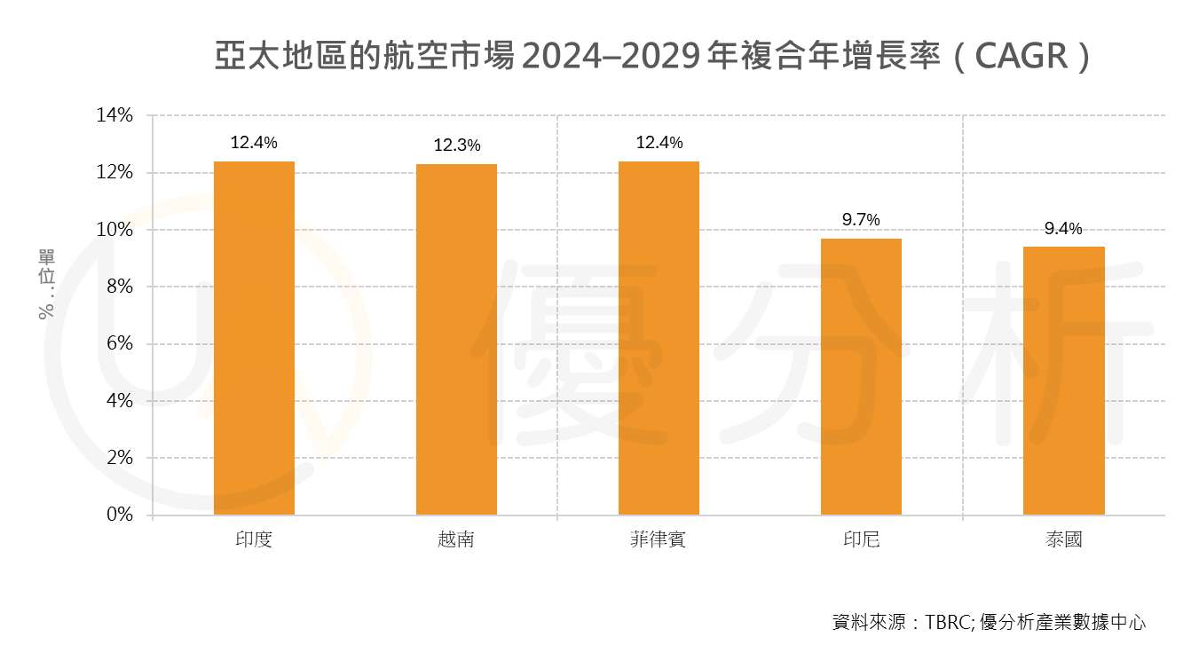 從宏觀數據來看,亞太地區的航空市場總值2024年達3,257億美元,其中中國占42%、日本占16%。但真正的成長引擎在南亞與東南亞。