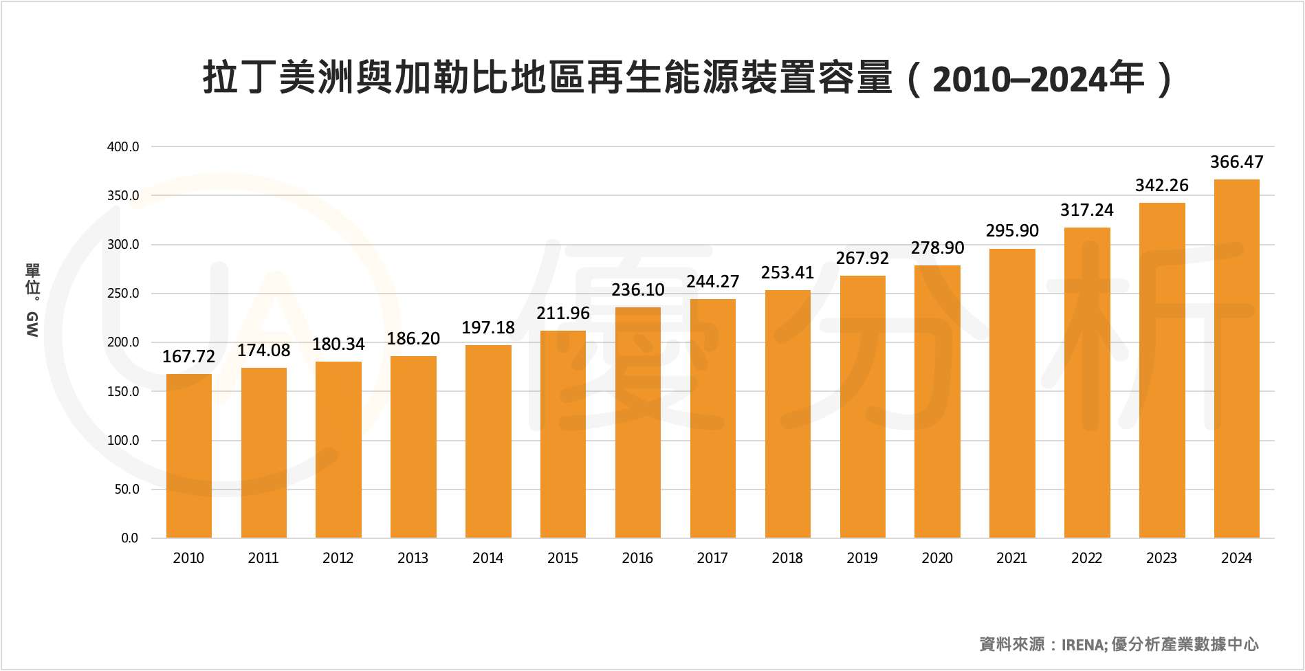 截至2024年,拉丁美洲再生能源裝置容量接近366 GW,較十年前成長約86%。目前該區近70%的電力來自再生能源,在全球主要經濟體中屬於高占比結構。