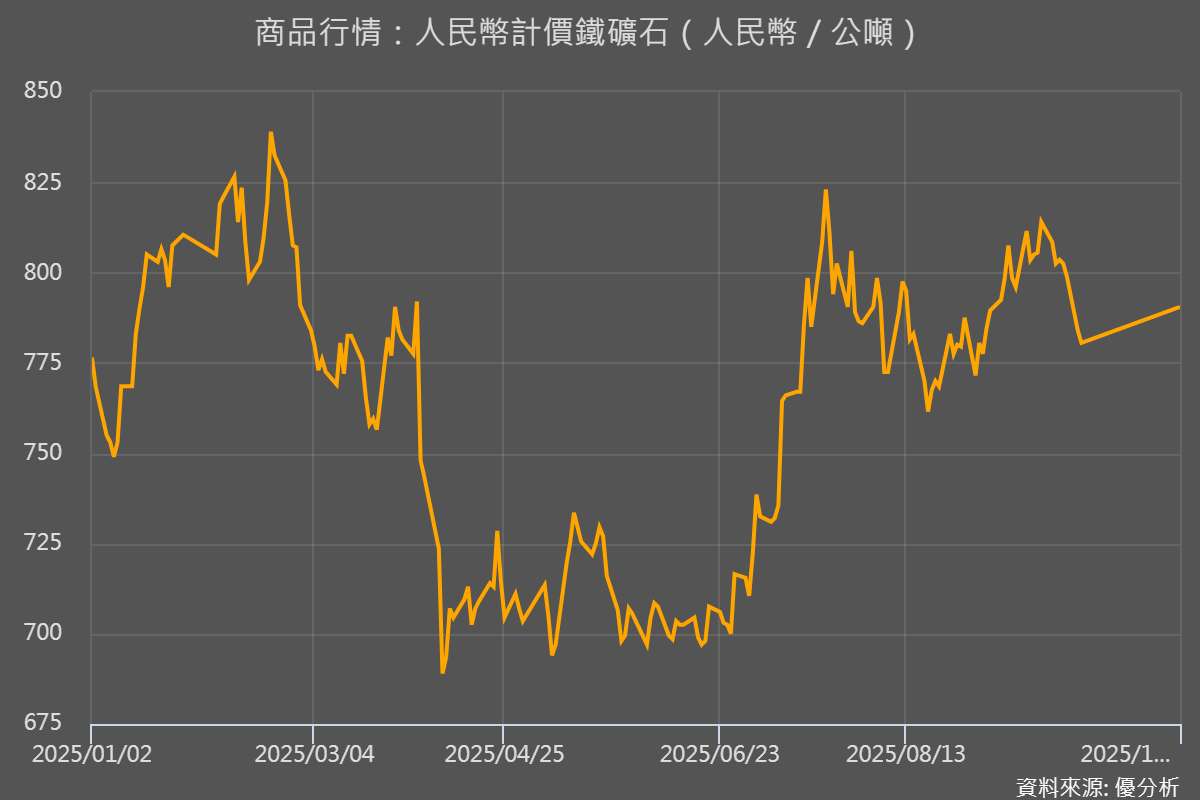 2025年10月29日(優分析/產業數據中心報導)⸺ 亞洲下午時間,新加坡交易所12月合約亦上漲1.42%,至每公噸107.25美元,同樣創下自10月14日以來新高。大連商品交易所(DCE)最活躍的1月鐵礦石期貨收漲1.96%,報每公噸804.5元人民幣(約112.94美元),為10月14日以來最高價位。