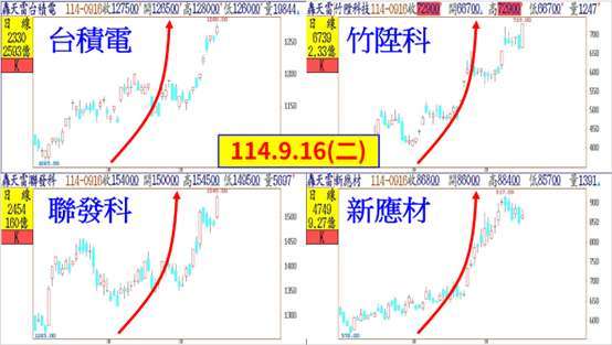 川普總統到英國進行第二次的國是訪問,達成「科技繁榮協議」,微軟、Google、甲骨文、輝達等美國主要科技大廠,將對英國投資 420 億美元,內容包含 AI、量子運算與能源等。昨日也提到過,主權 AI 將會持續擴大 AI 產業的需求與規模,AI 產業長線看好,但投資朋友應避開山頂上的股票,等待強勢股拉回與相對低基期的個股買點。