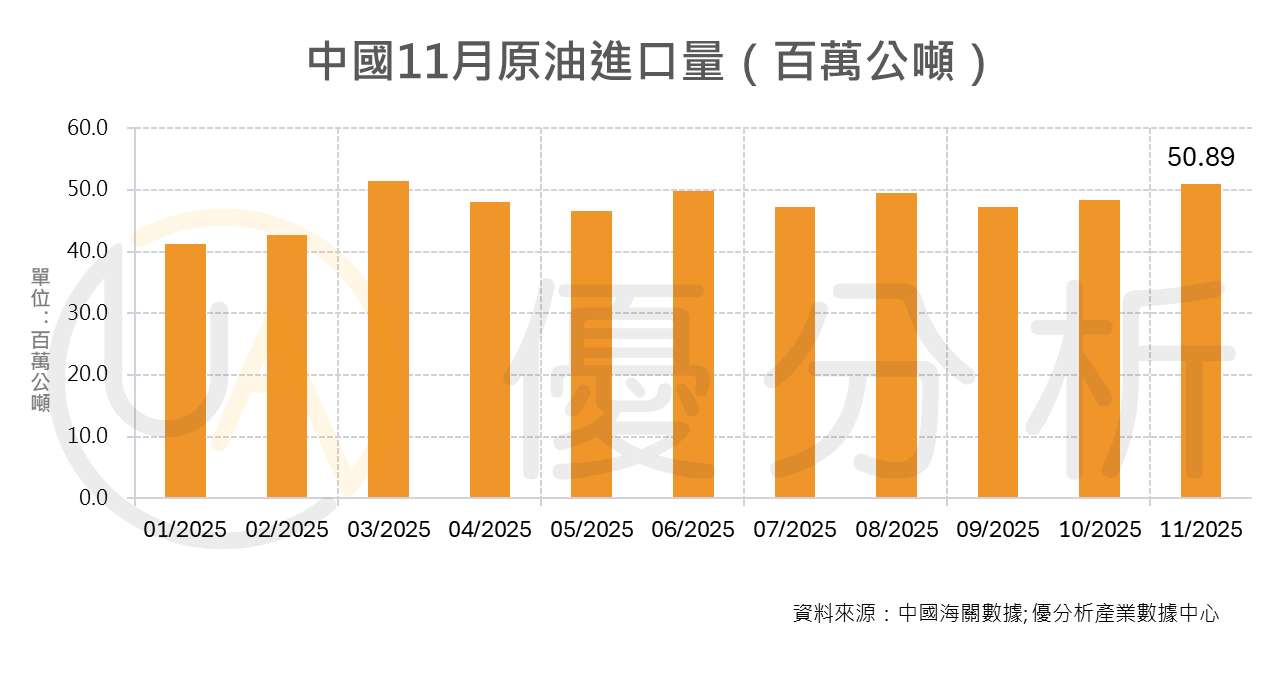 最後是到港時程的緣故。以11月為例,來自沙烏地阿拉伯的原油日均進口量達159萬桶,較10月大增34.5萬桶,創五個月新高;而伊朗原油進口也達到135萬桶,為2023年8月以來新高。這些原油多數為10月裝船、11月集中到港,短期內拉高了進口總量。