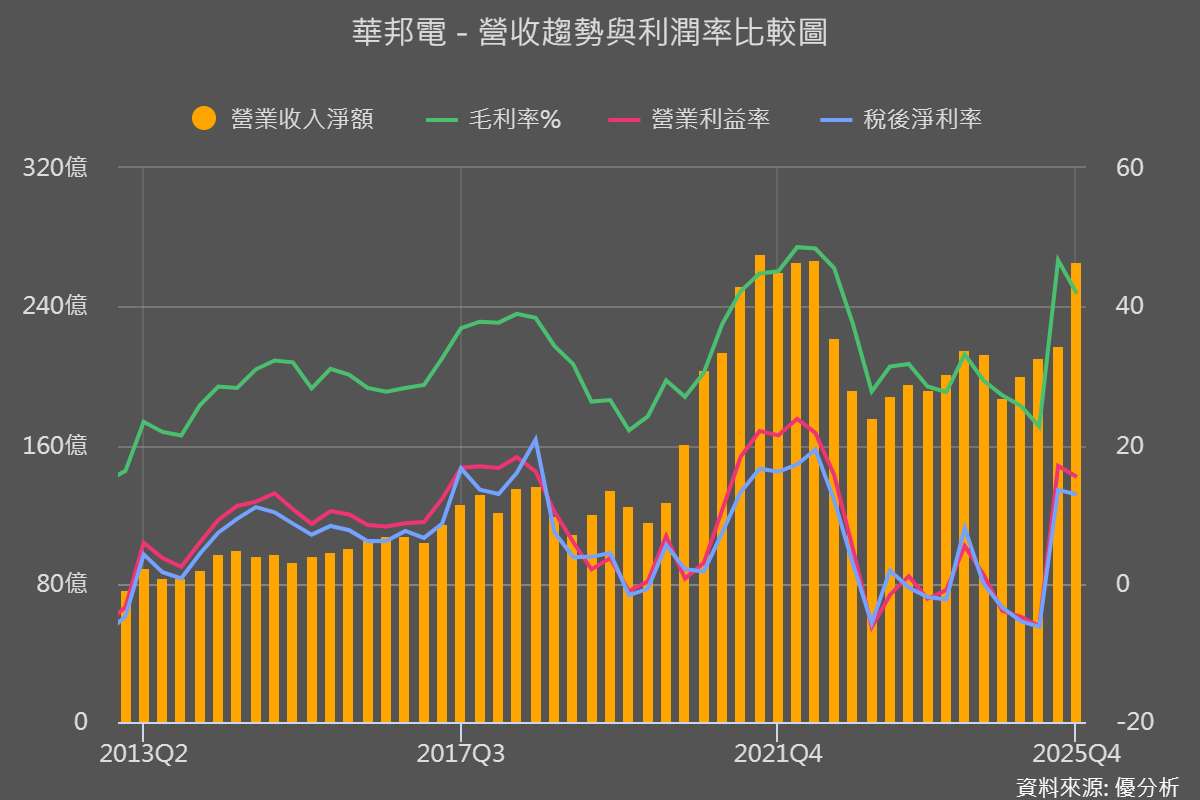 2026年03月20日(優分析/產業數據中心報導)⸺ 華邦電(2344-TW) 在 2025 年第 4 季營收 266.25 億元,季增 22.3%、年增 42.4%,若只看記憶體業務,單季營收更達 191.72 億元,季增 35.7%、年增 74%,顯示這一波成長主力就是記憶體報價上升與出貨同步放大。
